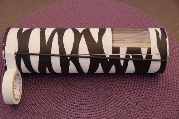 El siguiente paso es utilizar los pinchos para ocultar las ranuras y para hacer el envase parezca un poco más de lujo. La manera más rápida de hacerlo es usando cinta para unir los pinchos a la lata.
