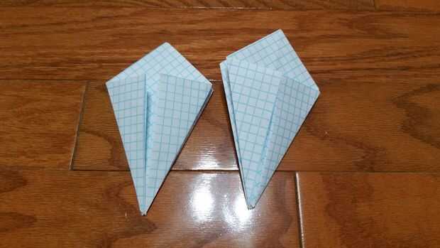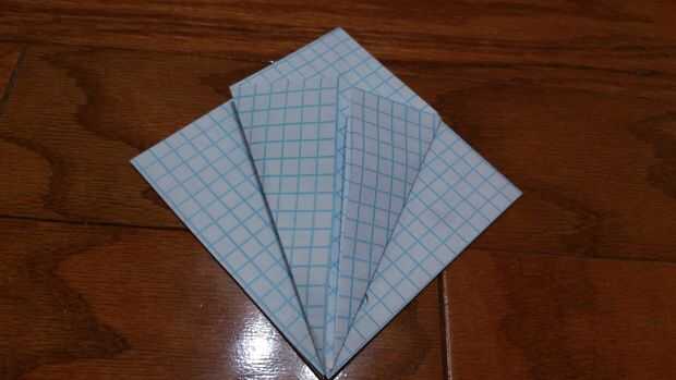 Tomar todas las cuatro aletas y doblar hacia arriba hasta que sus bordes se alinean con el doblez del medio.