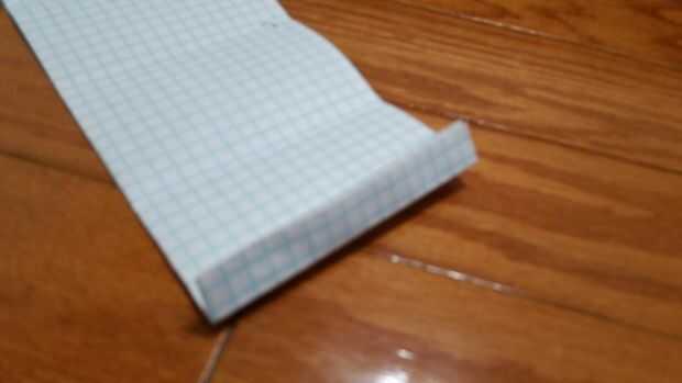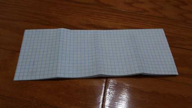 Tomar su tercera hoja de papel y doblar en ocho, según el cuadro. Doblar por la mitad perrito caliente estilo. Tomar uno de los rectángulos y doblar otra vez ligeramente para hacer un pequeño doblez en quinto. Lugar que dobla en la parte superior del doblez a su lado y la base cerrada de la cinta.