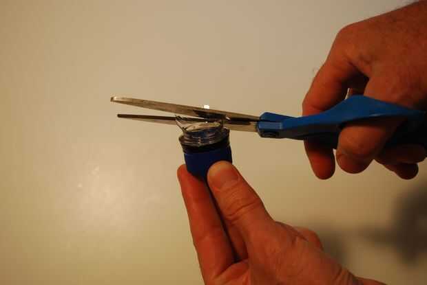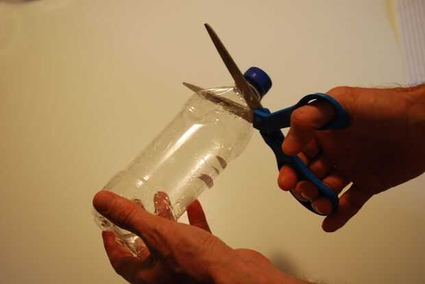 El primer paso para cortar el cuello de la botella es penetrar a través del lado.