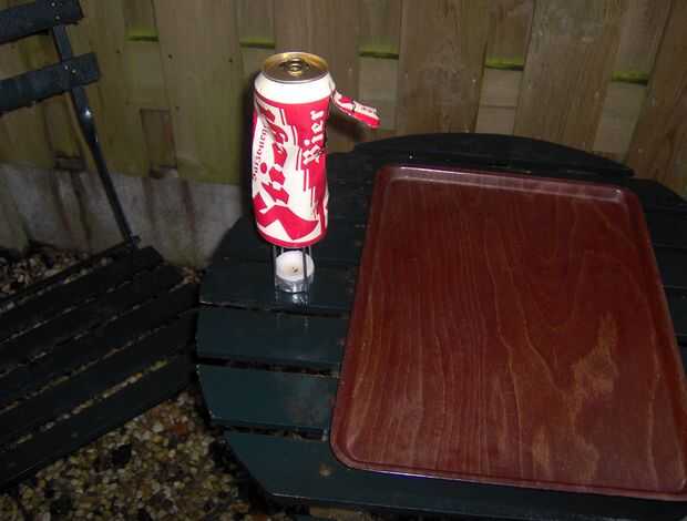 hacer la lata; dibujar un triángulo en la lata como en la imagen y recortar como lo hice