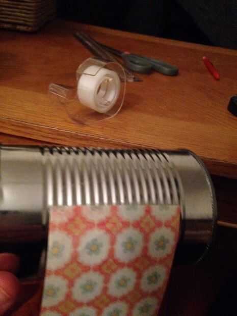 La tira de papel para fijarlo a la lata y envolver el papel firmemente alrededor de la cinta.