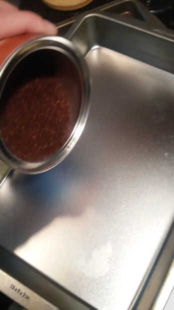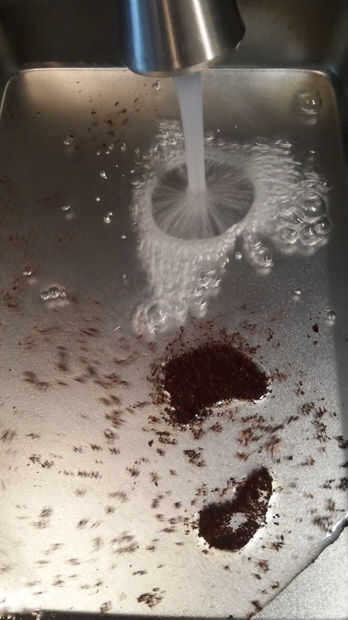 Comience por llenar la olla con agua y mezclar en un par cucharadas de café molido.