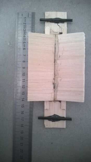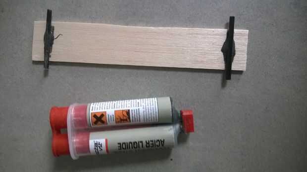 Cortar los tableros pequeños y pegar dos listones pequeños y fuertes. (yo usé un pegamento de epoxy) .choose oblicua y la cola juntos.