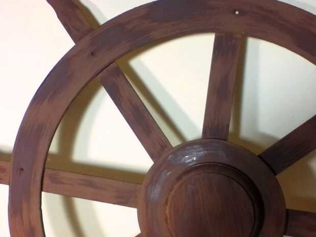 Se necesitarán dos tonos de marrón o lo que alguna vez color esquema con que trabaja. El más claro será el color de la rueda principal (pintura en primera y deja seco) el color en segundo lugar, más oscuro será para el aspecto envejecido, creado por mojar ligeramente los bordes de un cepillo seco, irregular en ella. Continuación, arrastre el cepillo suavemente y sin apretar sobre la rueda para crear envejecimiento/desgaste desparejo y efectos.