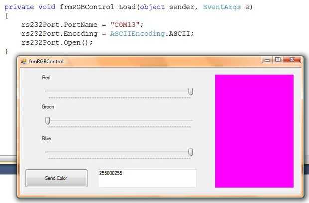 12 ahora podrá deslizar el rojo, verde, azul sliders en el C# programa y se debe controlar el LED RGB el Ardunio.