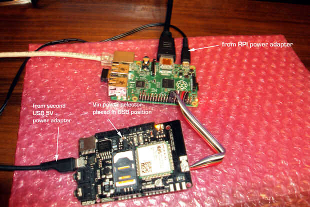 Referencias de hardware adicional y algunas alternativas de interconexión >> Raspberry PI y un gsm el escudo de la entretela.