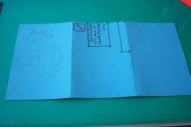 [Fig. 4] - voltee su carta. Plan hacia fuera donde será el anverso y el reverso de la postal. Me gusta la izquierda más en tercer lugar de la imagen frontal y la mitad tercera para la dirección de correo.