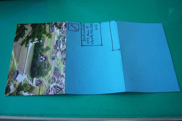 [Fig. 1] - Trace un rectángulo un poco más grande que su carta/tarjeta doblada sobre su imagen. Recorte.
