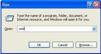 una vez en ejecutar, escriba cmd o cmd.exe y presione Entrar