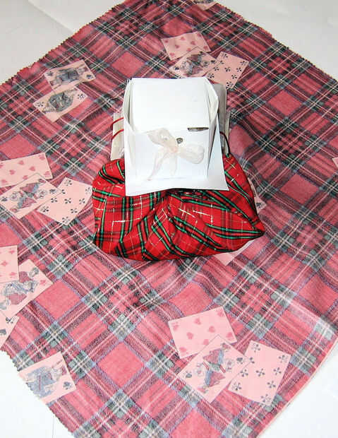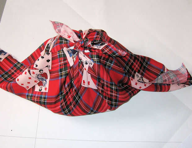 Furoshiki es un método Japon de atar un trozo de tela en un envoltorio o en este caso una bolsa de kickin'. Este es mucho más grande de lo que más necesita, pero el monedero que hice mi esposa fuera un pie 3 por hoja de 3 pies de tela de desecho que