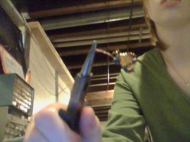 Cuando está acabado de hacer el cable de red alrededor de la piedra y llegar a la cima, usted puede hacer su libertad bajo fianza. Este es el lazo colgante en la parte superior de una pendiente, si usted está haciendo un collar. Sólo podrá referirse a él como una fianza, no importa lo se está utilizando para. DE TODOS MODOS! Se reúnen todos los hilos juntos en la parte superior y girar todos juntos. Agarra un par de alicates de punta (más fáciles con redonda alicates de joyería) y enrollamiento de los cables trenzados bajo para hacer un lazo. Corte cualquier exceso con su cortador de alambre (más fácil de corte con cuchillas al ras de la precisión). TA-DA! Ahora que estás hecho!!!!
