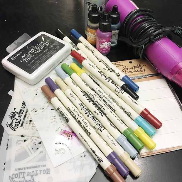 Tintas, colorantes, marcadores (estoy usando productos de Tim Holtz y tinta Ranger )