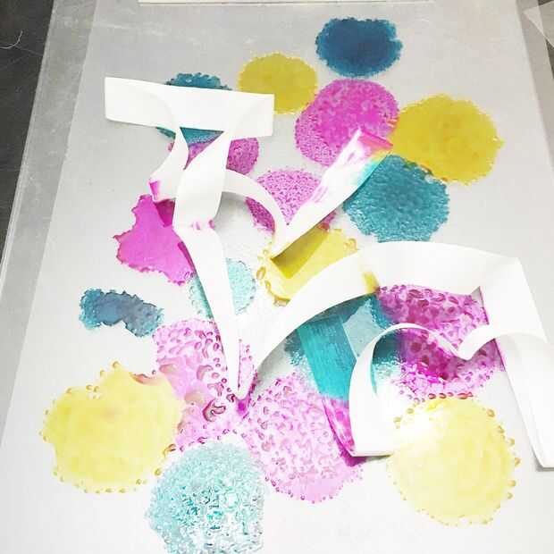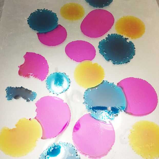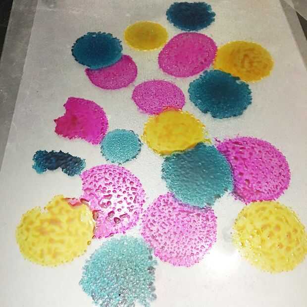 Sobre una superficie agradable de la tinta, poner un par de gotas de distintos colores y luego la niebla de agua. Puede también arrojar a chorros la tinta en la cinta de opciones en diferentes lugares y luego la niebla. Toma tu cinta crujir y luego frote sobre las tintas hasta que estés satisfecho con la cantidad de color.