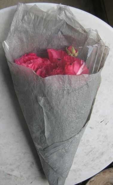 Comprar un ramo de flores cada semana (me encanta tener flores frescas en el piso, y como no gastar en un jardín creo que es un lujo asequible). Cada semana estaba poniendo el papel de las flores en la papelera de reciclaje y me pareció un desperdicio. Había visto algunos grandes instructables en la fusión de bolsas de plástico (especialmente) y pensaron que harían una buena envoltura reutilizable. Esta es la primera y espero hacer algunos mas con los patrones y tal vez un empate.