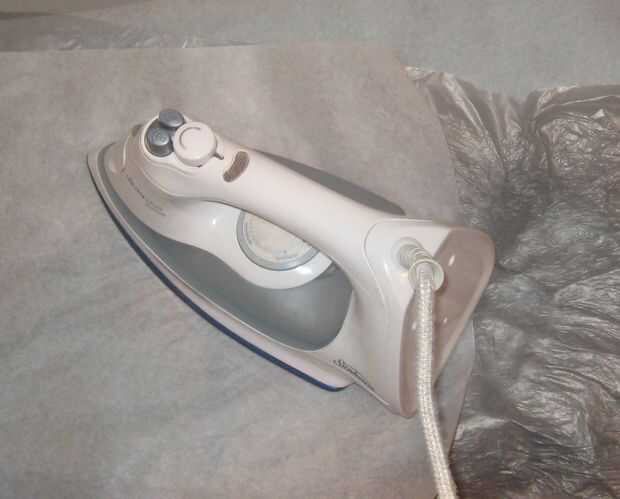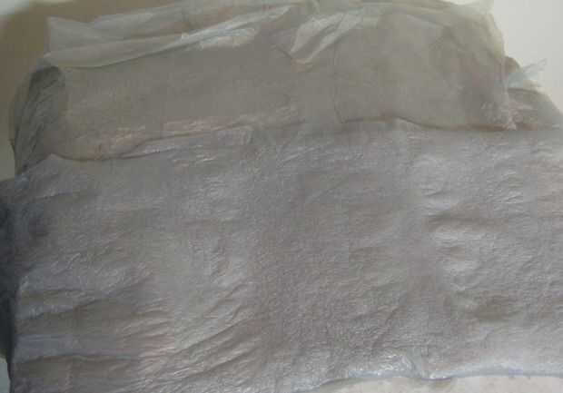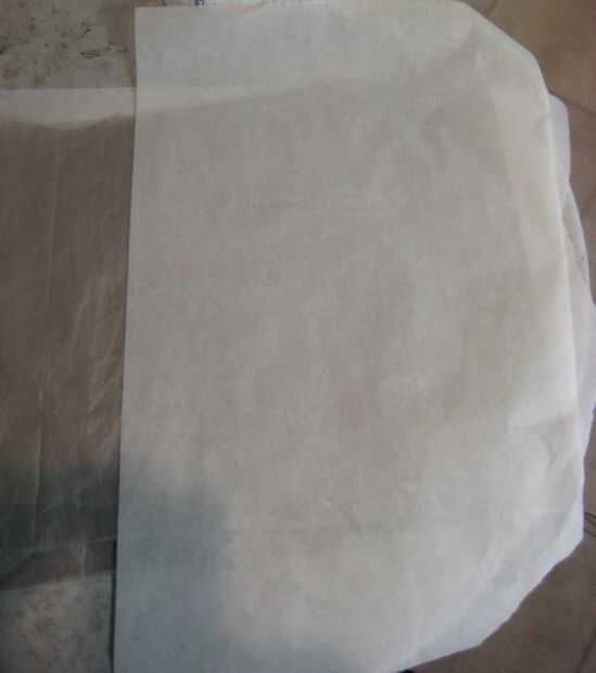 Cortar las bolsas para hacer piezas largas. Con un papel para hornear debajo y encima empecé con sólo 2 capas de plástico comencé a planchar demasiado bajo y tuvo que desplazarse hasta seda y lana. Yo planchar el plástico en parches y lotes, utilizando un trozo largo de papel por debajo y un pedazo más pequeño en la parte superior y atropellando a la plancha es muy difícil. He probado cada parche y si vinieron aparte solo planchar sobre ella. El plástico no se queda liso y terminado como papel crepé.