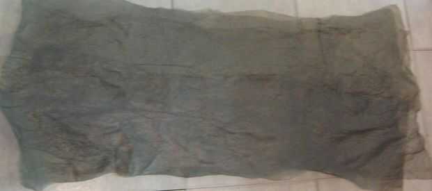 Este es un bolso hecho de una bolsa de alimento de animal doméstico forrada con algodón blanco y viejo manijas hoja y cinta. Los mejores a utilizar están hechos de una fibra de plástico. También se puede utilizar un tipo de papel que plancha una plan