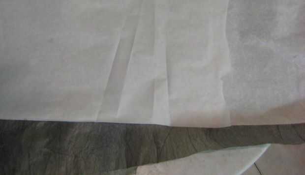 Planchada 2 piezas juntos 3 veces, luego fundido juntos para hacerlo. Que cortar por la mitad y había fusionado con los lados cortados en la parte inferior. Luego dobla la parte inferior hasta cerca de 8cm y colocar el papel entre y sobre los pliegues al hierro en un pliegue (por lo que la parte inferior de las flores podía permanecer mojada).