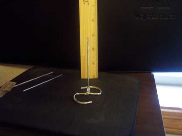 Tomar uno de los palillos rectos y colocarlo entre las dos piezas verticales en el centro del círculo. Curva las dos piezas verticales alrededor y envolver todo el camino de la base. Probablemente va a salir de forma ahora, pero solo hacerlo para que pueda estar bastante recta hasta el palo recto.