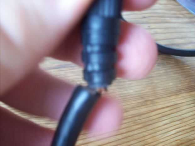 Después de que el cable es a través de llevar el cable coaxial a través de los agujeros recién creados en su cinturón. Asegurarse de dar los lotes de cables de holgura para los nudos atar para arriba encima de la correa.