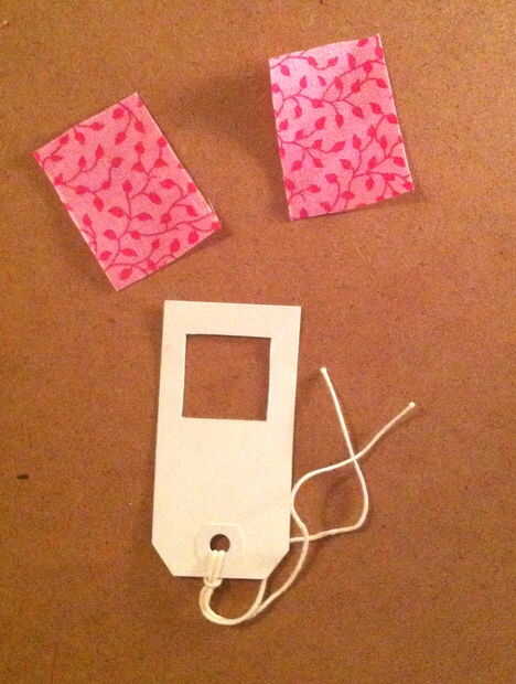 a continuación, elija una tela y corta dos cuadrados.  Asegúrese de que son más grandes que el corte en la etiqueta, pero no demasiado grande que cuelgue de los bordes de la etiqueta.