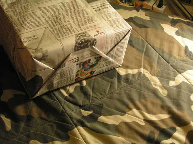 una idea de último instante envuelve: tratar de papel prensa. Barata, creativa y simple.Paso 1:... buscando... Encuentra a diario con gráficos interesantes. El NY Times es, compruebe sus artes y secciones del recorrido. Hacia los cómics es la manera
