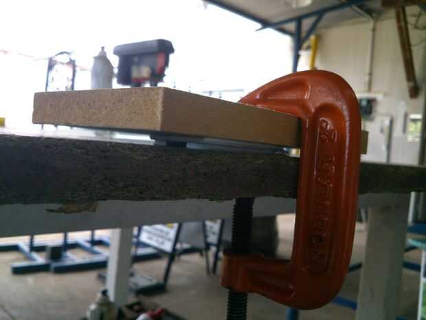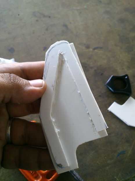 Mi error se utilizó una prensa C con una pequeña pieza MDF, el problema es cuando yo Presione la jugada de PVC y soldadura torcido, bueno corte un poco más grande la plantilla, para que yo puedo reparar con la amoladora...