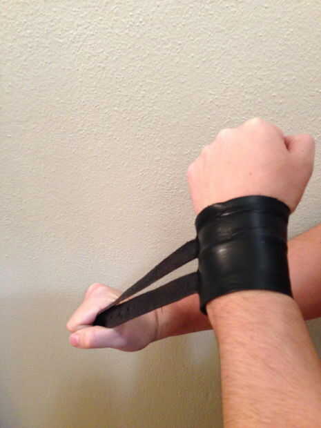 Poner en la envoltura tirando de las correas del cuerpo con las hebillas en la parte interior de la muñeca. Envuelva las tiras debajo de la muñeca y sujete la correa superior con su mano. La hebilla de la correa de la parte inferior, luego la correa superior y estás en el negocio. El cuero puede ser demasiado rígido a levantar de inmediato, pero cuero reacciona muy bien al contacto con la piel humana, así que usarlos para un par de días romperlas, se estiran y se ajustan a las muñecas y tendrás un par de apoyo pero muy cómodo y envuelve la muñeca del estilista.