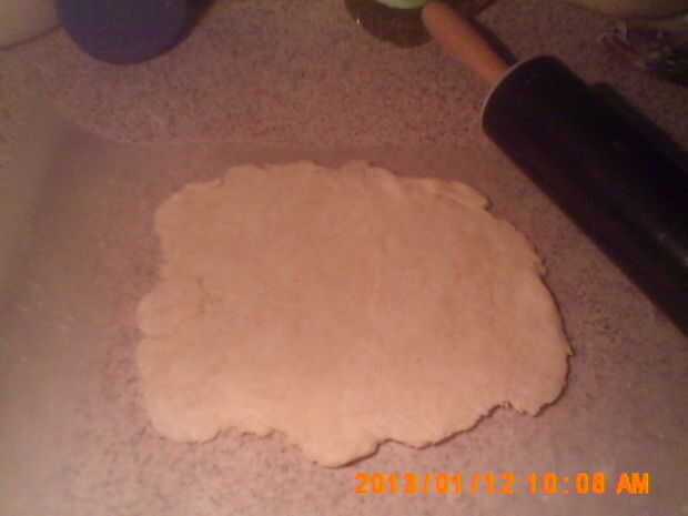 Estirar la masa en forma circular a 1/8 de pulgada o menos. Cualquier espesor que usted prefiera.
