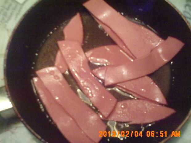 Corte algunas rondas de Bolonia en tiras de por lo menos 1/2.