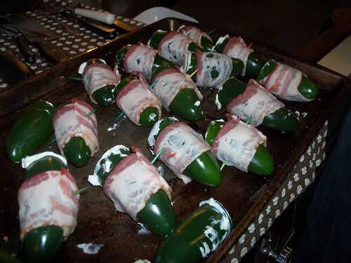 Tan en Texas amamos en barbacoa, fiestas, eventos etc.Paso 1: Ingredientes y equipo1 paquete de tocinoAproximadamente 12 medianas jalapeños1 paquete de queso cremacuchara decuchilloCorte de lámina perimétricaGuantes desechables muy importante!Par de