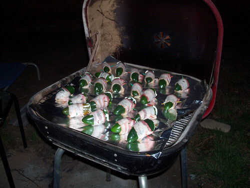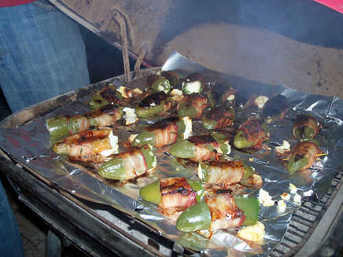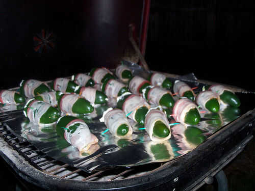 A la parrilla ratones (queso crema de jalapeños rellenos envuelven en tocino)