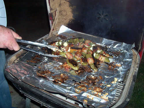 Tan en Texas amamos en barbacoa, fiestas, eventos etc.Paso 1: Ingredientes y equipo1 paquete de tocinoAproximadamente 12 medianas jalapeños1 paquete de queso cremacuchara decuchilloCorte de lámina perimétricaGuantes desechables muy importante!Par de