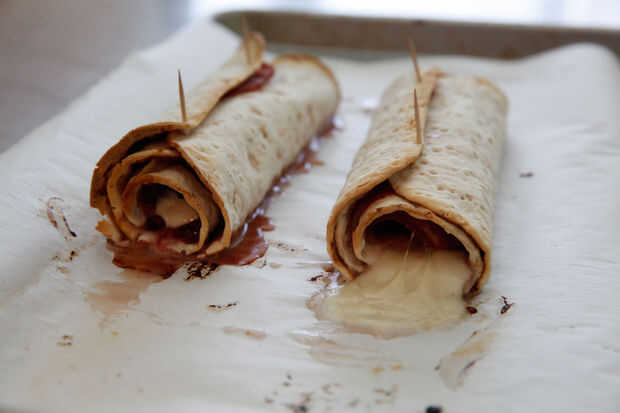Puse el horno a 350F. Pongo los panecillos en el horno durante unos 20 minutos - pero cada horno es diferente, te sugiero revisar en ellos cada cinco minutos. Que desea hornear los rollos hasta que se derrita el queso y el jamón esté caliente. Cuando salen del horno, transferirlos a una toalla de papel para enfriar - algunos de la grasa de jamón podrían escaparse hacia fuera.