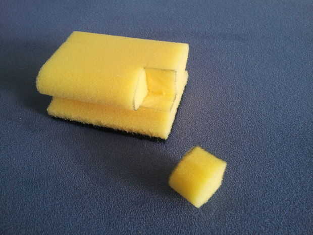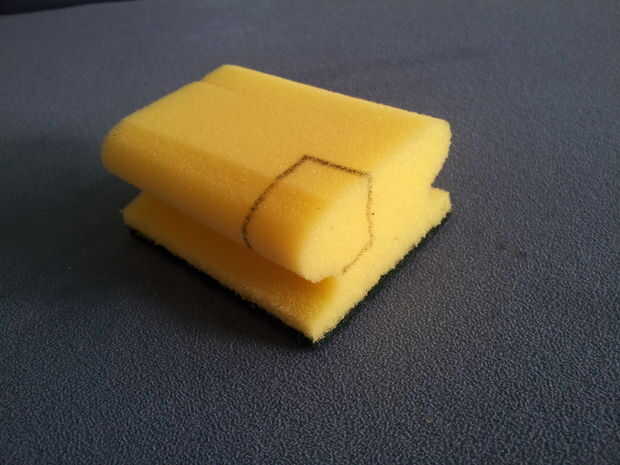 Con motivo de este recorte volumen Mantenga su pinza para la ropa encima de la esponja y marcar el ancho de la pinza para la ropa.