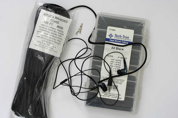 • Cinta aislante; dependiendo de su diseño de auricular que tenga a los extremos de la cinta para que el tubo termo retráctil hace su trabajo de aferrarse a algo con el paracord en lugar.