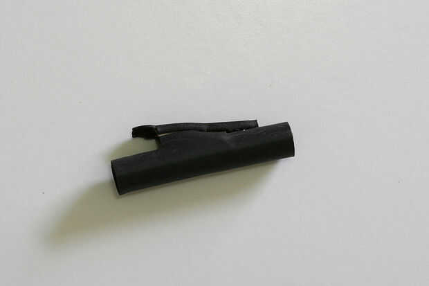 Aplique calor, luego repetir para la parte inferior la mitad, esta vez utilizando un trozo de tubo termo retráctil que es de un diámetro suficiente para envolver alrededor de dos secciones de paracord y la parte inferior media del clip.
