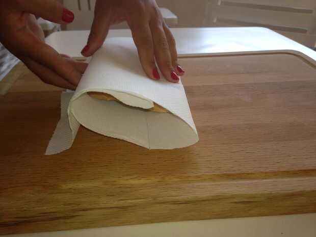 Poner el otro trozo de papel todo el camino alrededor, así que cubre el bocadillo.