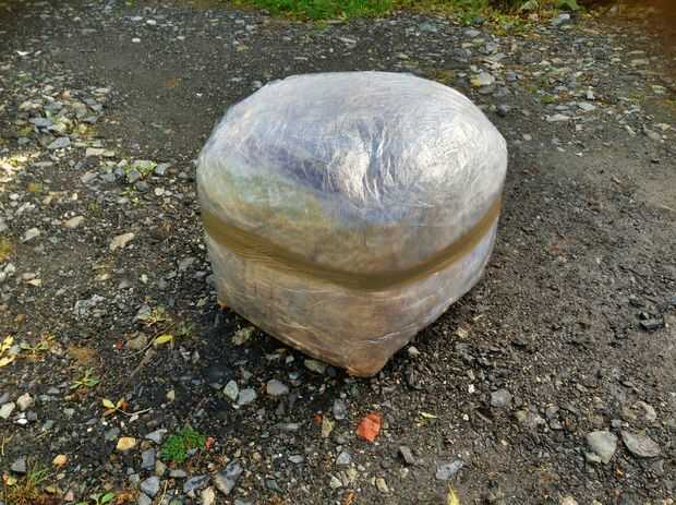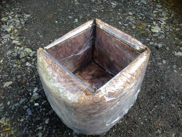 Voltee el capullo y poner en orden los bordes inferiores con envoltura de paleta como se muestra en las fotos. Finalmente, utilice cinta de parcela o cinta adhesiva resistente al agua para garantizar los bordes pierden que se pueden ver.