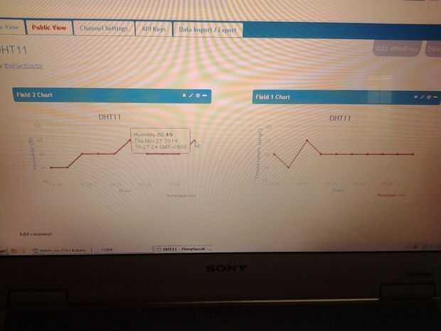 Ahora estamos listos para subir y captura de datos a nuestro canal online donde se graficaron automáticamente y se puede descargar más tarde en formato excel.