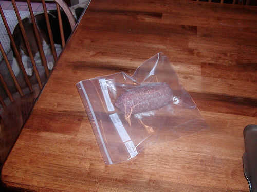 Lugar 1 lb carne de res en ziploc bolsa y selle.  Deja una pequeña abertura para que escape el aire.
