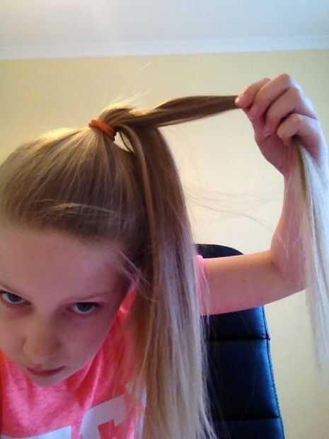 Paso 1: materiales 1. cola de caballo2. horquilla o pelo clipPaso 2: Flip Tapa cabeza y cola de caballoPaso 3: horquilla Poner la horquilla o pinza de pelo justo debajo de su lazo de peloPaso 4: apriete Este es el último y más importante paso para es