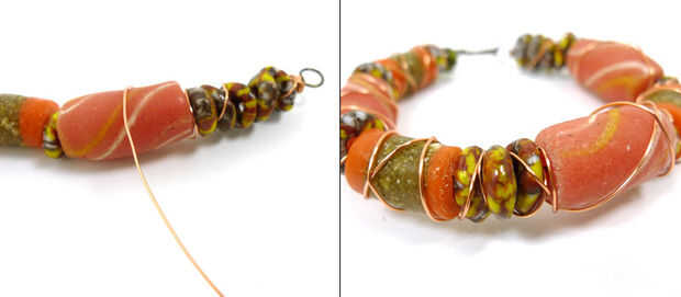 Antes de hacer esta pulsera, ya tenía cable envuelto mucho de granos, pero siempre como colgantes, nunca a utilizarse como granos. Por lo tanto, pensé que estaría bien intentar que!Comencé en estas cuentas tan pronto como conseguí el cable color, ya