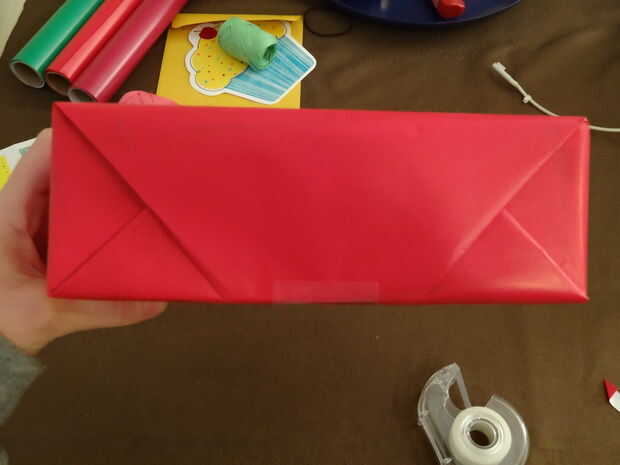 Asegure los lados con un trozo de cinta y repita al otro lado de la caja.