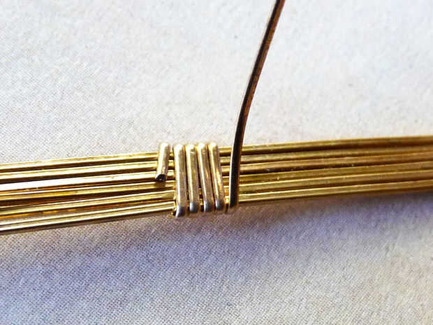 Envuelva el alambre redondo de 1/2 en el paquete de esta manera 4 veces y terminar en la parte posterior del paquete. Corte el exceso alambre redondo de 1/2 para que se superponga la espalda 3-4mm.