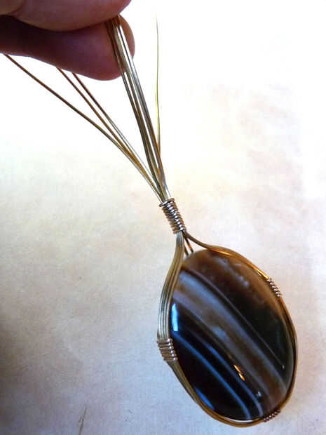 En primer lugar, separar los hilos superiores con los dedos hasta encontrar los 4 cables más frontales. Esto hará que la libertad bajo fianza. Doble suavemente los cables posteriores apagado a los lados. Haz tu pluma (o mandril u otro objeto) y lo puso detrás de los cables de la fianza, justo encima de la parte a. Ahora doble los cables sobre la pluma. Los cables no deben superponerse. Mantener el mandril en su lugar, tomar uno de los cables traseros y viento alrededor de los cables de la fianza y el vástago para asegurar los cables de la fianza. Deje el mandril de la pluma en la libertad bajo fianza hasta que los cables estén completamente terminados.