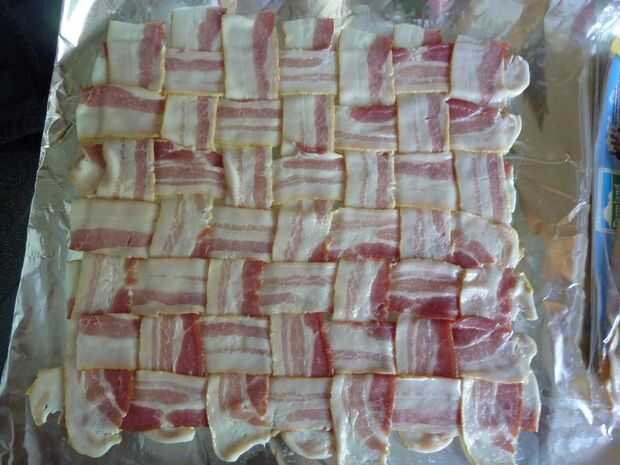 Oh mi Yum! Esto es algo que hacen bastante regularmente. Así de Simple!Paso 1: Prepárese Conseguir un lomo de cerdo (encontré uno que fue previamente marinado en Borbón y jarabe de arce!!! Santa mierda!!!)Colocar varias rodajas de tocino debajo de él