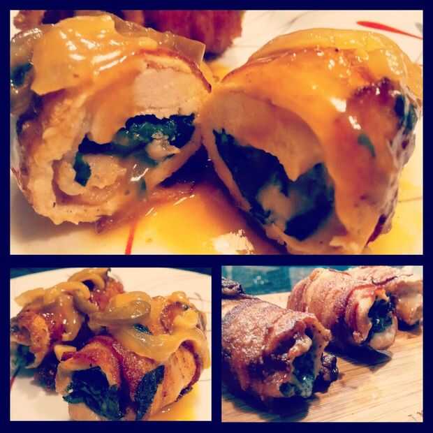 rellenas de jamón de cerdo envuelto en tocino! No hay mucho más cerdo-tastic que.Generalmente no cocino con carne, por lo que mi socio en locura intervino para crear este plato muy carnoso y sabroso. El producto final es deliciosamente rico y hace un