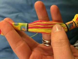 Usted puede escoger unos colores diferentes para cambiar en y hacia fuera durante el proceso o se puede comprar la seda tye dye del bordado. Esta es mi favorita especialmente porque da los cambios en el color sin tener que parar y cortar el hilo y el retie en otro hilo.