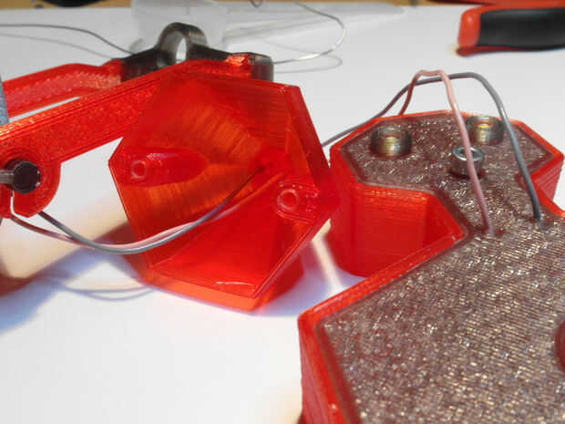 Ahora corte los hilos de rosca en pocos pasos y no en una vuelta. La viruta se otra manera obstruir el agujero y en un hilo de mala. Quizás las agujeros tuvieron que ser perforado hasta 3 mm. Otra forma de hacer un buen hilo en PLA es colocar el tornillo en el agujero calentando con un soldador. Si se siente débil Retire la plancha y taladrar el tornillo. Después de refrescar abajo desenroscarlo.
